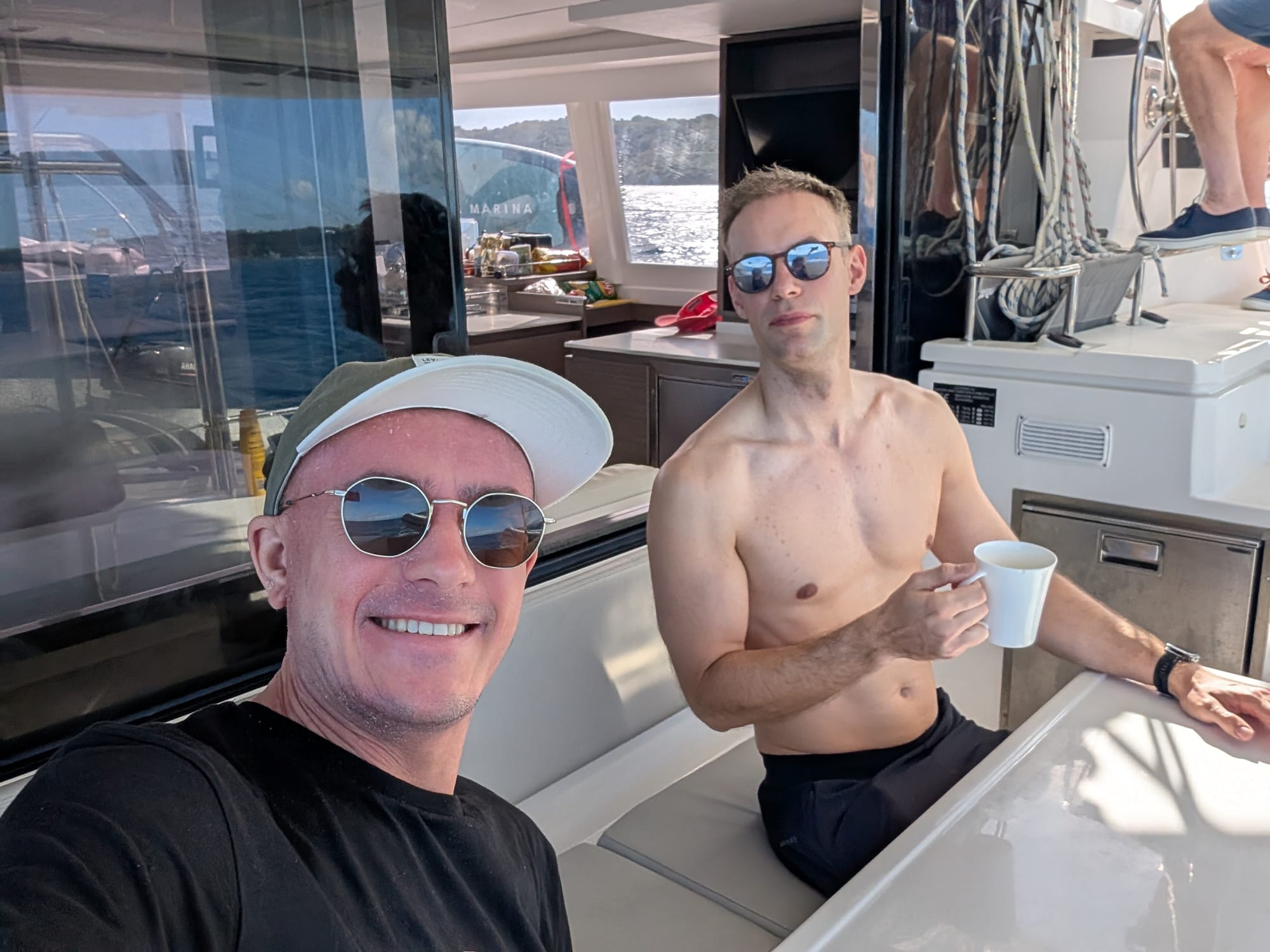 The real after dinner entertainment came in the form of getting back in the Dinghy in some harsher waves, in the dark! It wasn't going too badly until all of a sudden the boat has spun around, and then some of us were wet and in the boat, some.wet and not in the boat, barely anyone dry! We were then 10 meters off shore, and then had to come back to a small Jetty to collect Pete and Colin!
