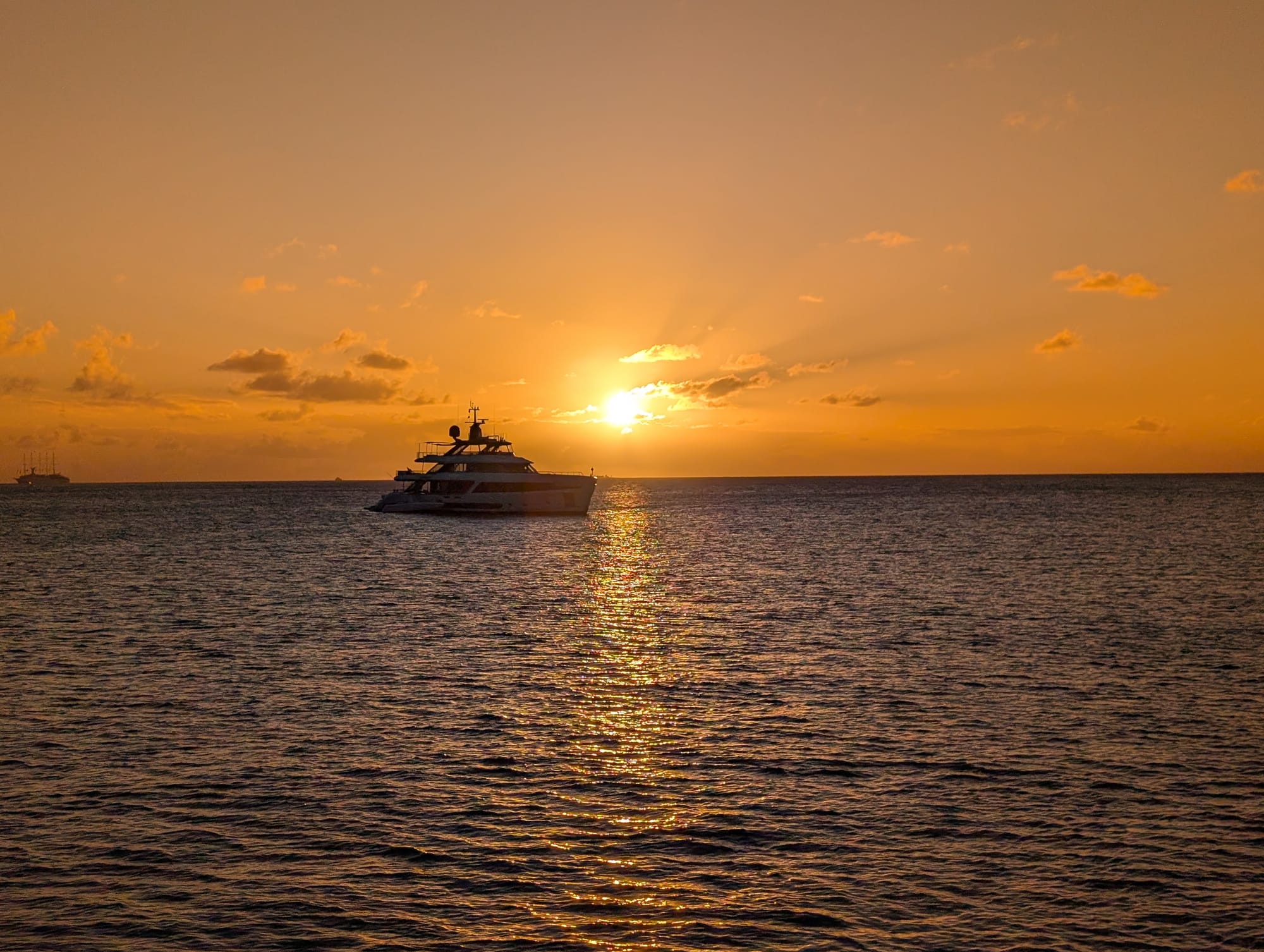 Tonight, we all saw the legendary Green Flash from the sun just as it descended the horizon, punctuation time to get off the boat, head back to Da'Vida for dinner.