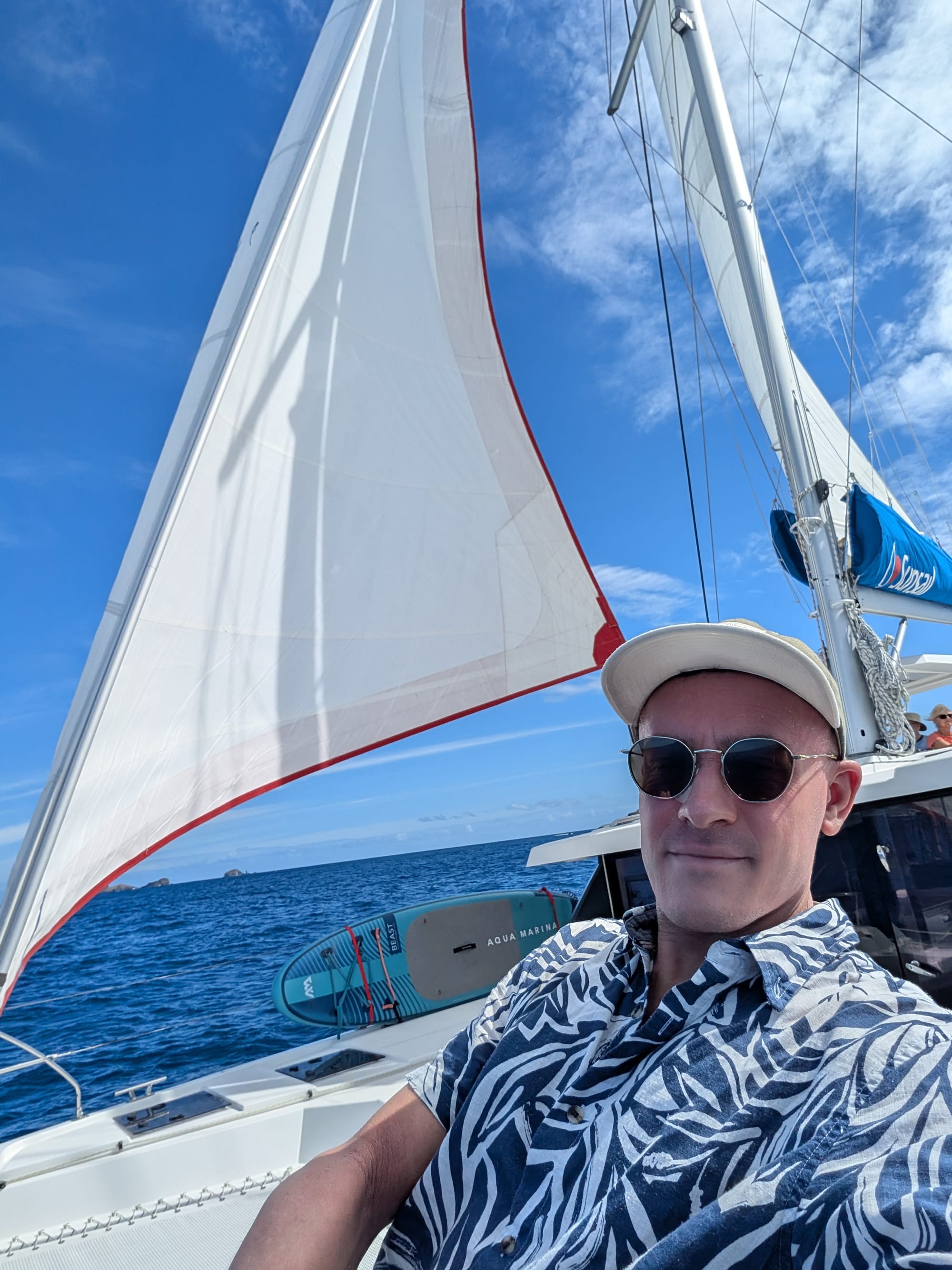 Then it was engine off, wind power on, and the difference was lovely, calm, just the noise of the boat creating the waves as we sailed the 3-4 hours towards Tintamarre.