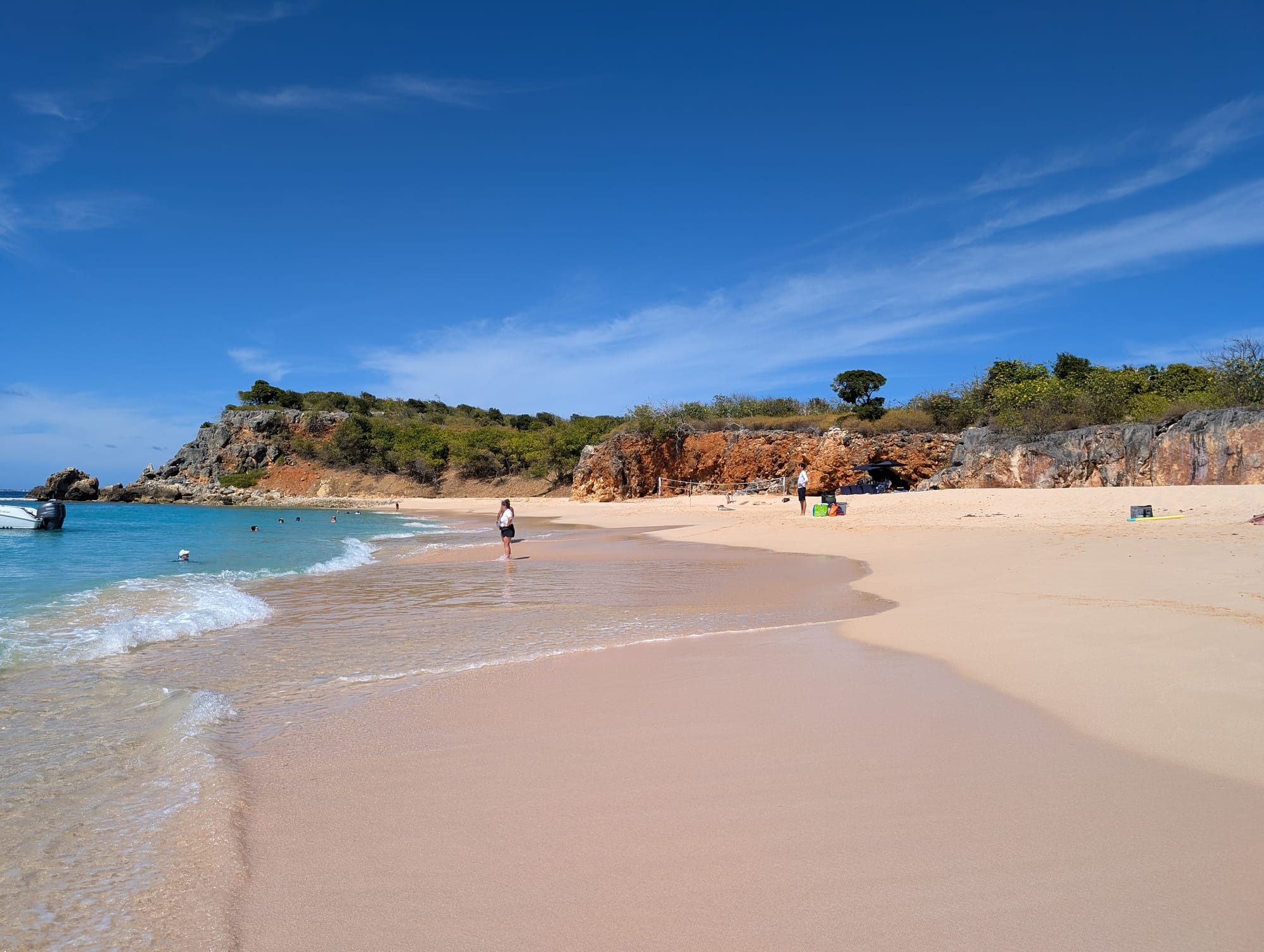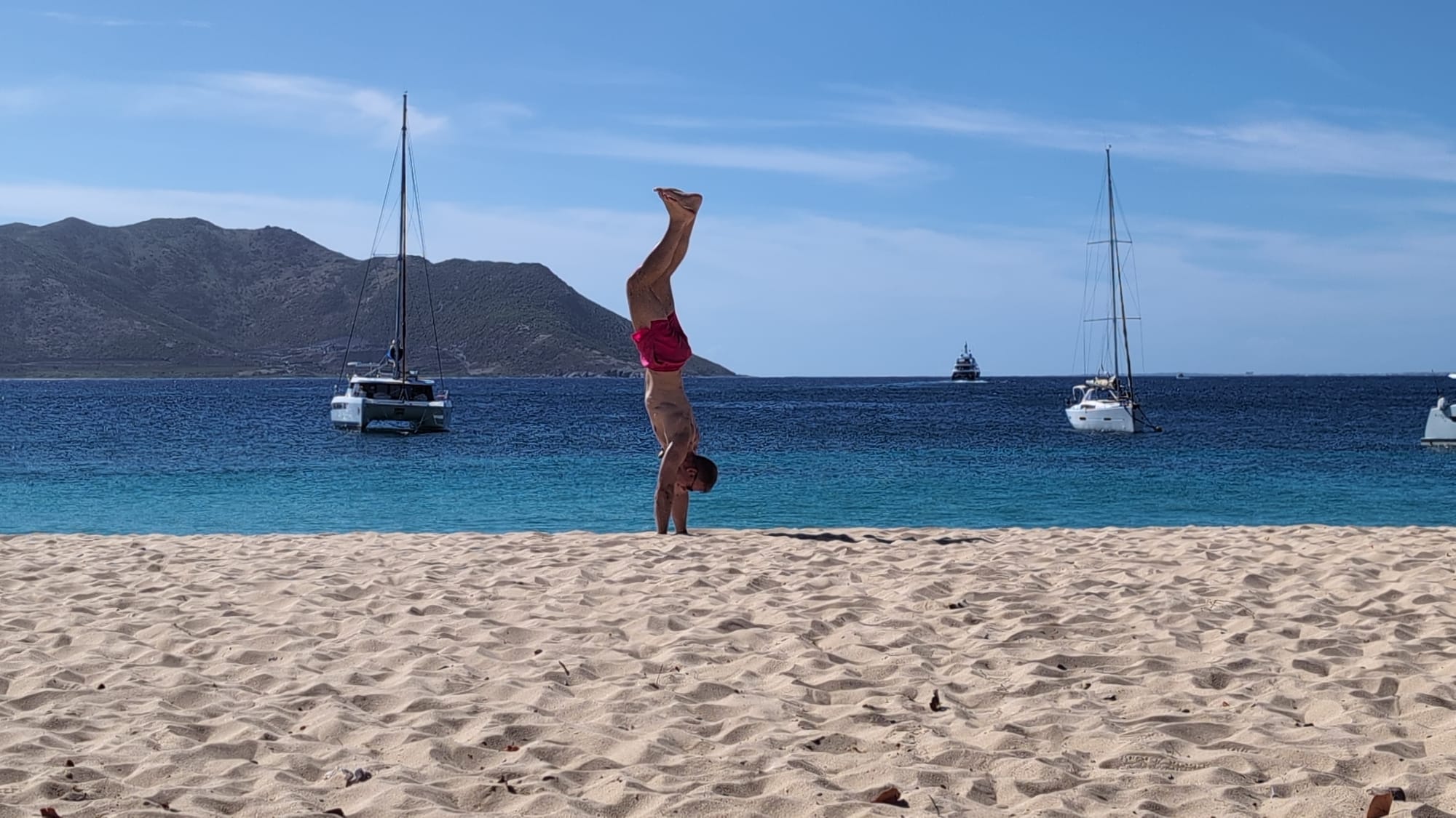 After lunch, I went ashore on the Paddle Board, the rest in the dinghy, for a walk up and down the idyllic sand. This was the most "Caribbean" beach we've been to so far and was only occupied by a few beachgoers, and the typical rich people having their white table cloth sit down lunch!