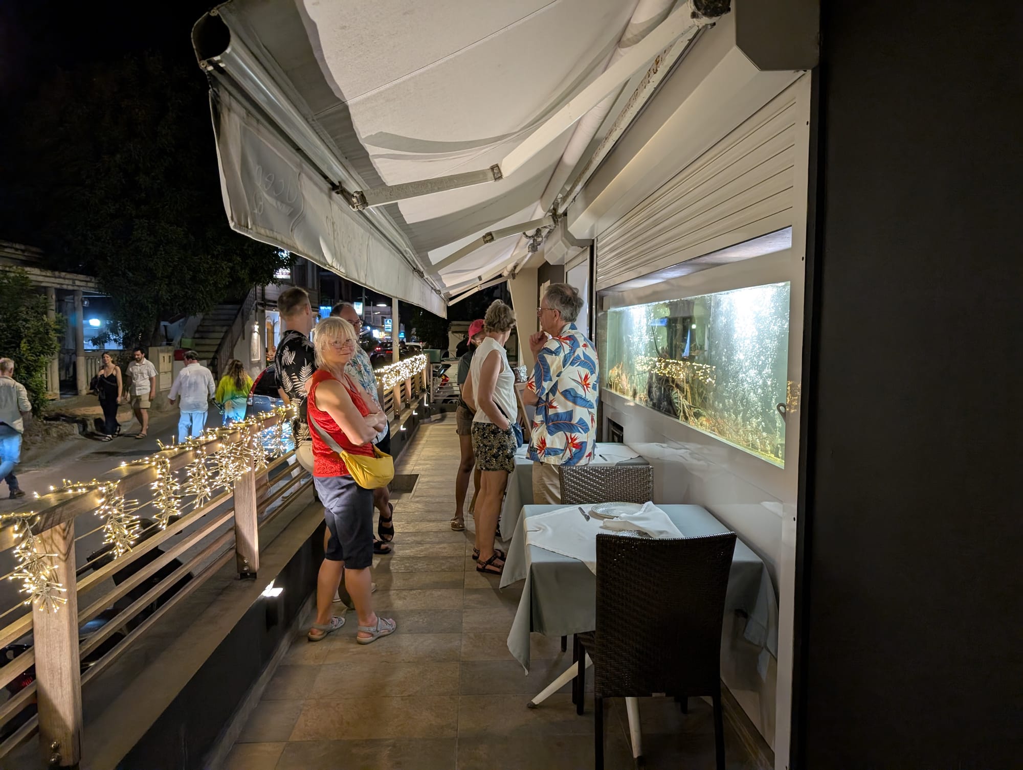 We chose Ocean 82, based on its great reviews and good menu options, slightly upsetting the Maitre-D by daring to arrive on a Saturday evening without a reservation for a table for 6. No bother, however, as he found us a table right in the heart of the restaurant, flanked on all sides by either wealthy elderly Americans "Hey Baaaarb... Do you want the Lawwbbsstteeerrr?", or younger Europeans "Tonight we're all going to get meessseedd uppp weeee"!