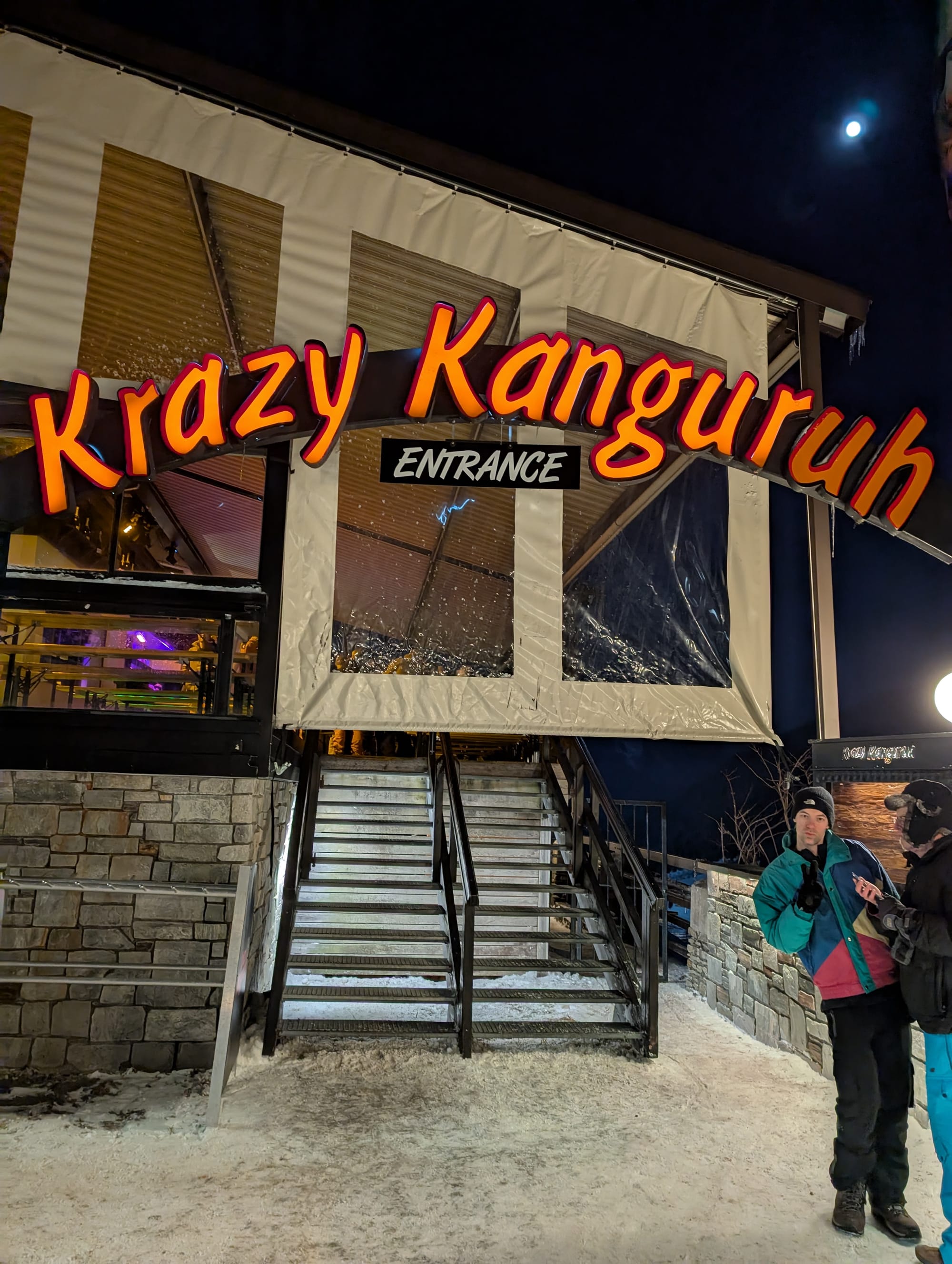 Krazy Kanguruh didn't disappoint, a slightly more modern vibe than last night, where we meet Martin 4 - Martin Garix the DJ whose remixes were every other song, but definitely got the crowds jumping on the tables again! There was something very Apres about dancing surrounded by icicles one the ceiling, in an outdoor bar in -12C weather, with a thin layer of frozen beer on the floor. The highlight was either the table-dancing, or perhaps the impromptu conga!