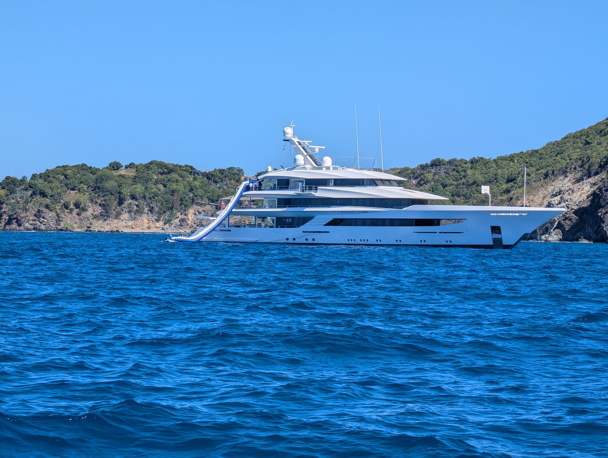 Ready to set off, we motored around to the island of St Barthelemy (St Barts) and its capital city of Gustavia. Katie, as the advance-party, went ashore to clear customs for us, registering our intentions for the next 24 hours or so. This allowed the rest of us to observe all the super yachts that anchor here!